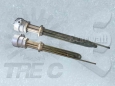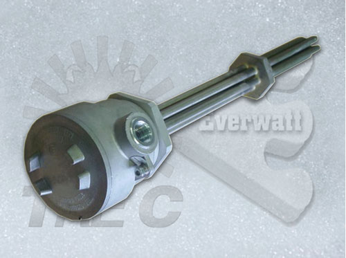 Ce type de réchauffeur est composé d’un faisceau tubulaire formé d’un, deux ou trois éléments électriques chauffants de différents diamètres, normalement pliés en U ou en anneau, perpendiculaires à la sortie des contacts électriques ou pliés à 90 degrés. Chaque élément est soudé au TIG ou soudé-brasé en alliage d’argent sur des embouts filetés de diamètre fileté de 1 à 2 pouces 1/2 à pas conique « NPT », « GAZ » ou « WITWORTH », ou sur embout avec filet non unifié de dimension variable sur demande du client, en fonction de la pression de service et de la température de travail.